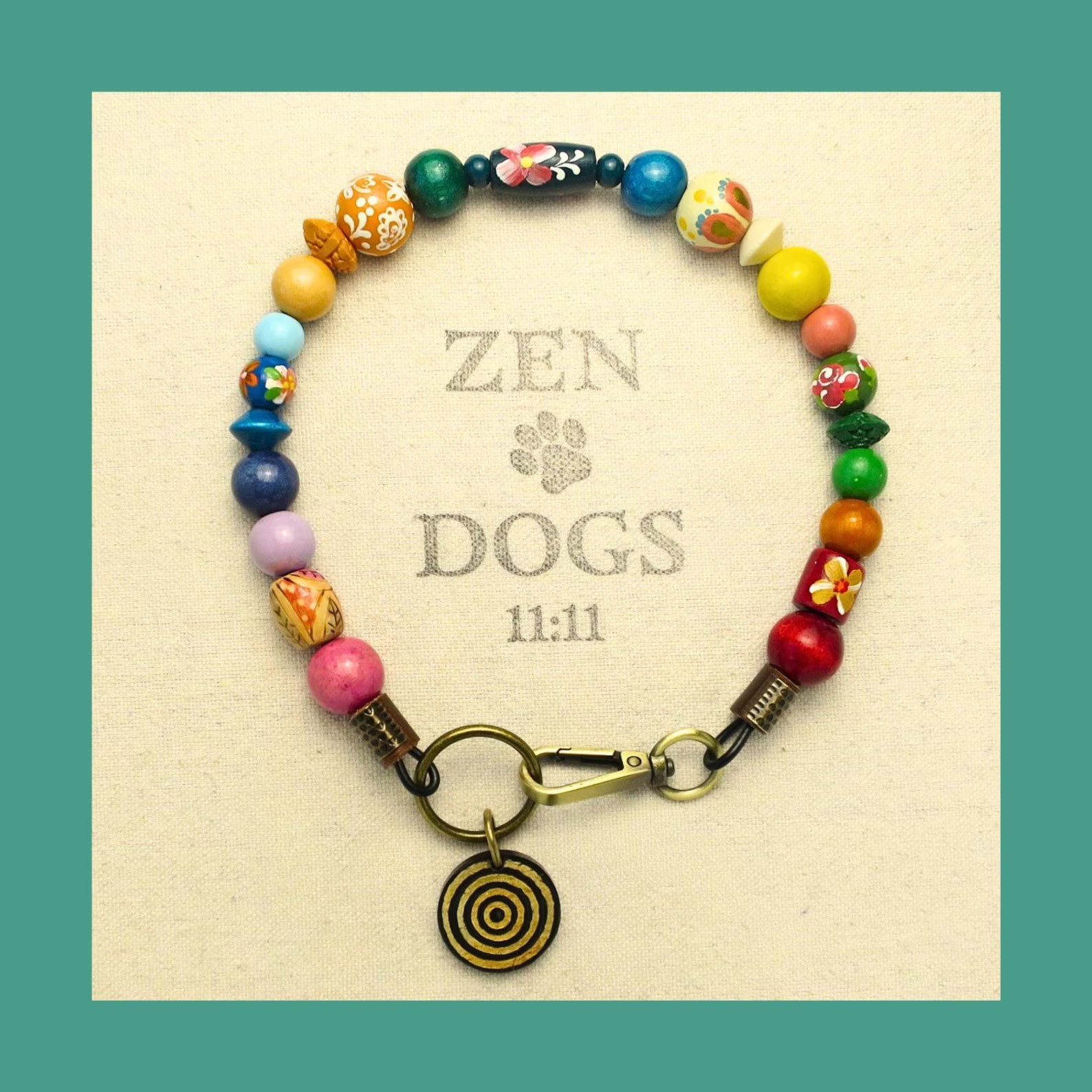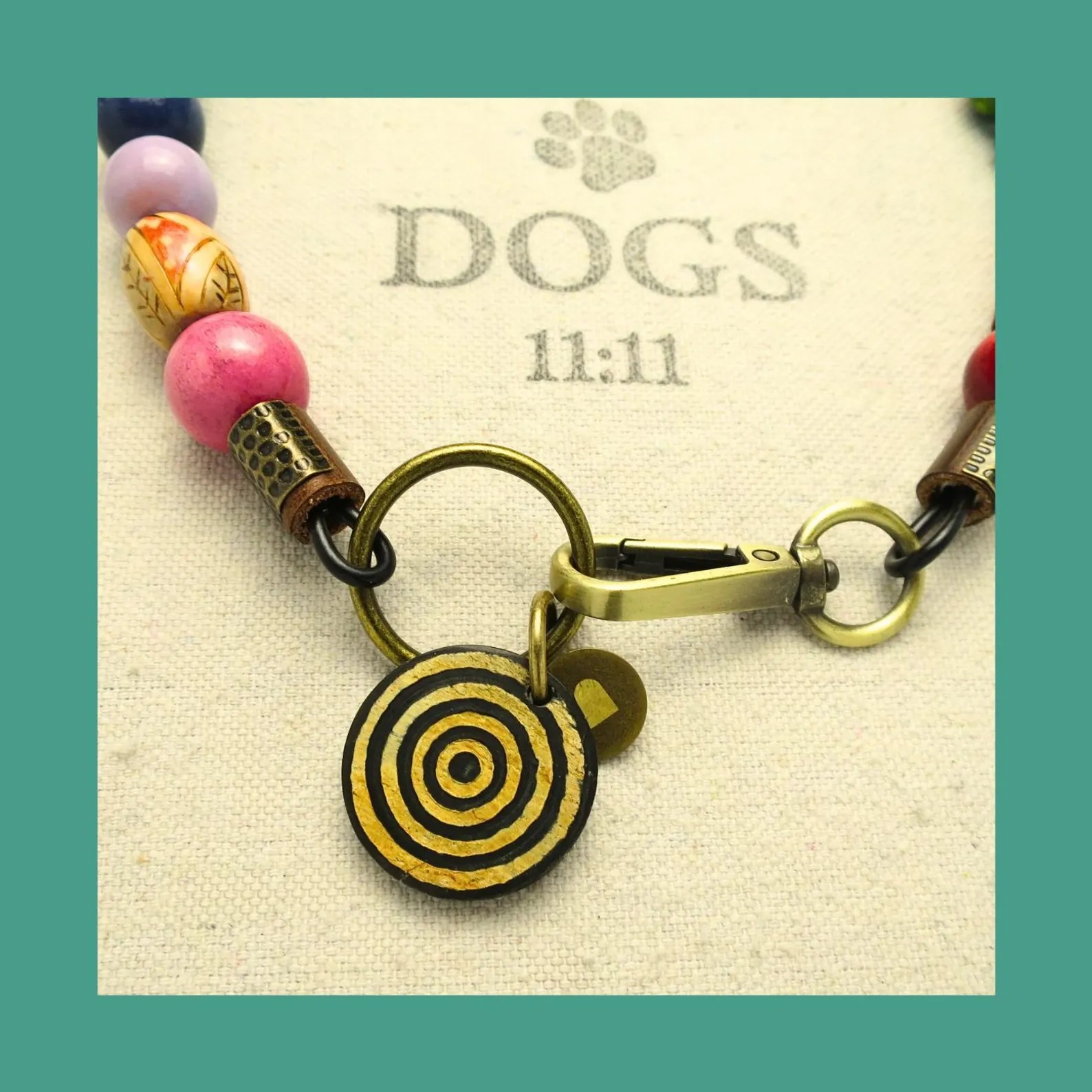 dog collar, beaded dog collar, stylish dog collar, zen dogs collar, brass pendant, bone pendant, copper pendant, metal pendant, lotus flower, evil eye, paw print, hand painted beads, wooden beads, bone beads, nut beads, handmade dog collar, durable dog collar, exotic beads, one of a kind dog collars, mala beads, unique dog collar, pet accessories, designer dog collar, symbol of love, spiritual connection, spiritual dog accessory, mindfulness