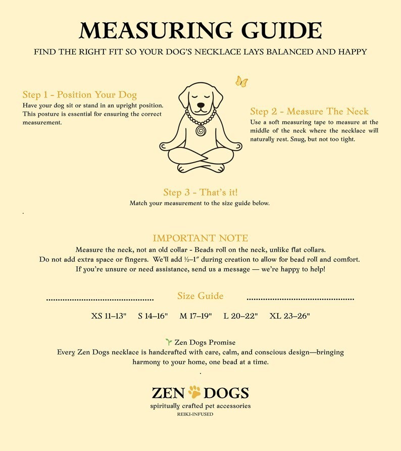 To ensure the perfect fit and maximum comfort for your dog, it is essential to follow the provided sizing guide carefully. Accurate measurements of your dog’s neck are crucial, as a properly fitted collar not only looks and feels great but also promotes safety and well-being. By taking the time to measure your dog’s neck precisely, you can be confident that your Zen Dogs Beaded Mala Dog Collar will provide a snug, comfortable, and secure fit, allowing your canine companion to fully embrace the spiritual and stylistic benefits of this remarkable accessory.