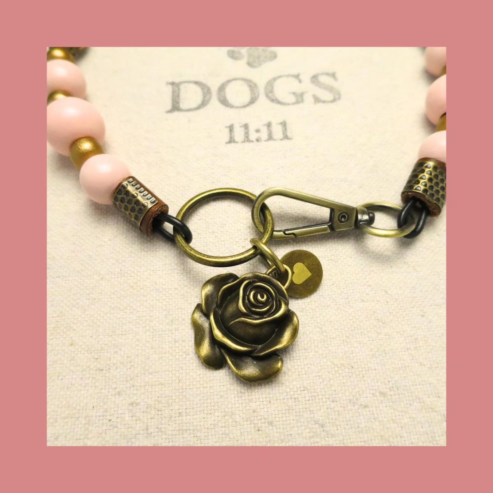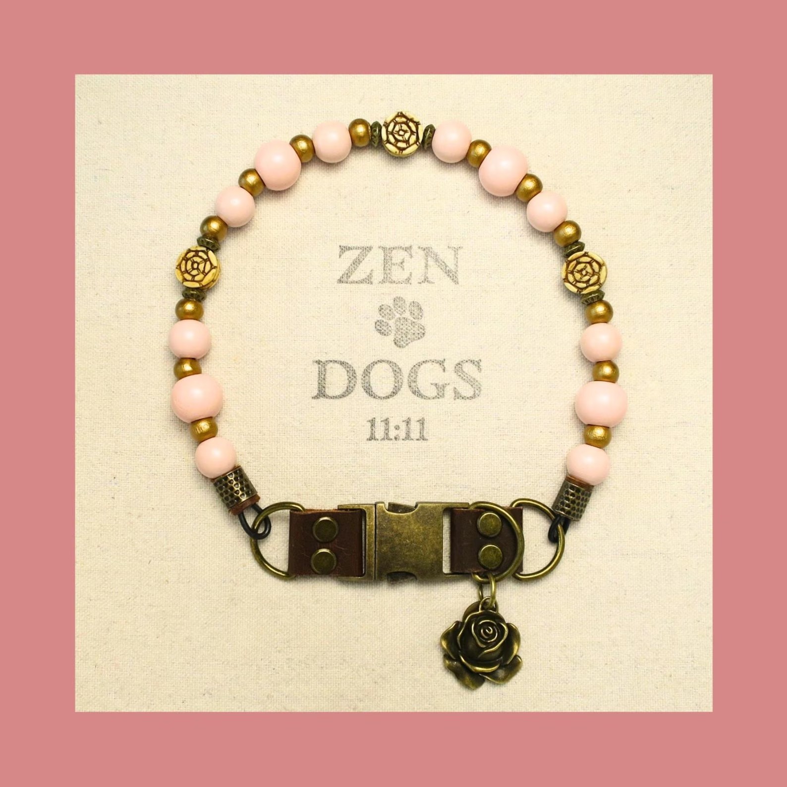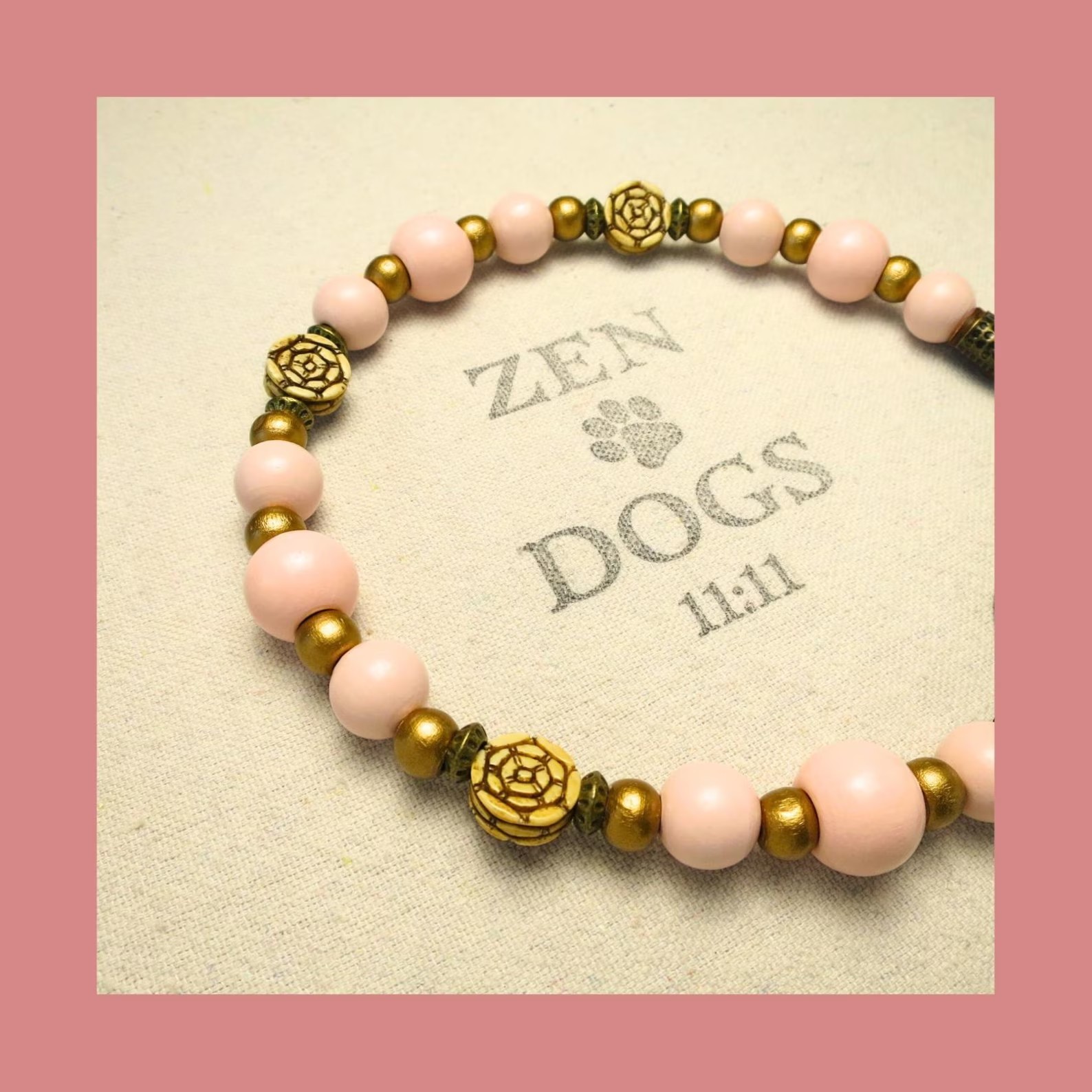 dog collar, beaded dog collar, stylish dog collar, zen dogs collar, brass pendant, bone pendant, copper pendant, metal pendant, lotus flower, evil eye, paw print, hand painted beads, wooden beads, bone beads, nut beads, handmade dog collar, durable dog collar, exotic beads, one of a kind dog collars, mala beads, unique dog collar, pet accessories, designer dog collar, symbol of love, spiritual connection, spiritual dog accessory, mindfulness