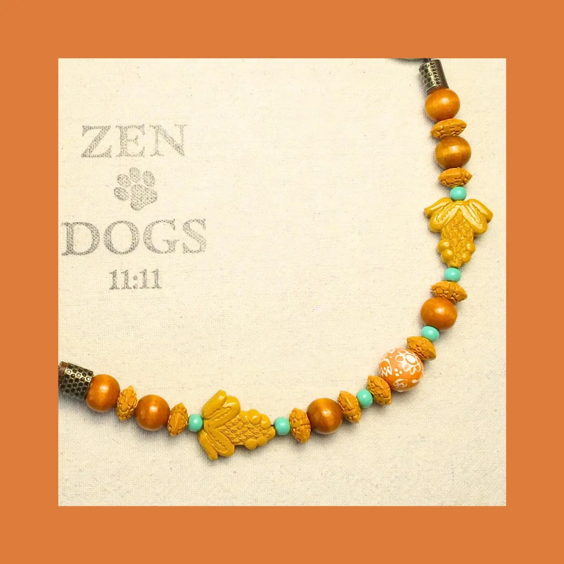 Strung with natural wood and hand-painted beads and built with premium leather, it’s a stylish and durable accessory for dogs who leap through life with presence.