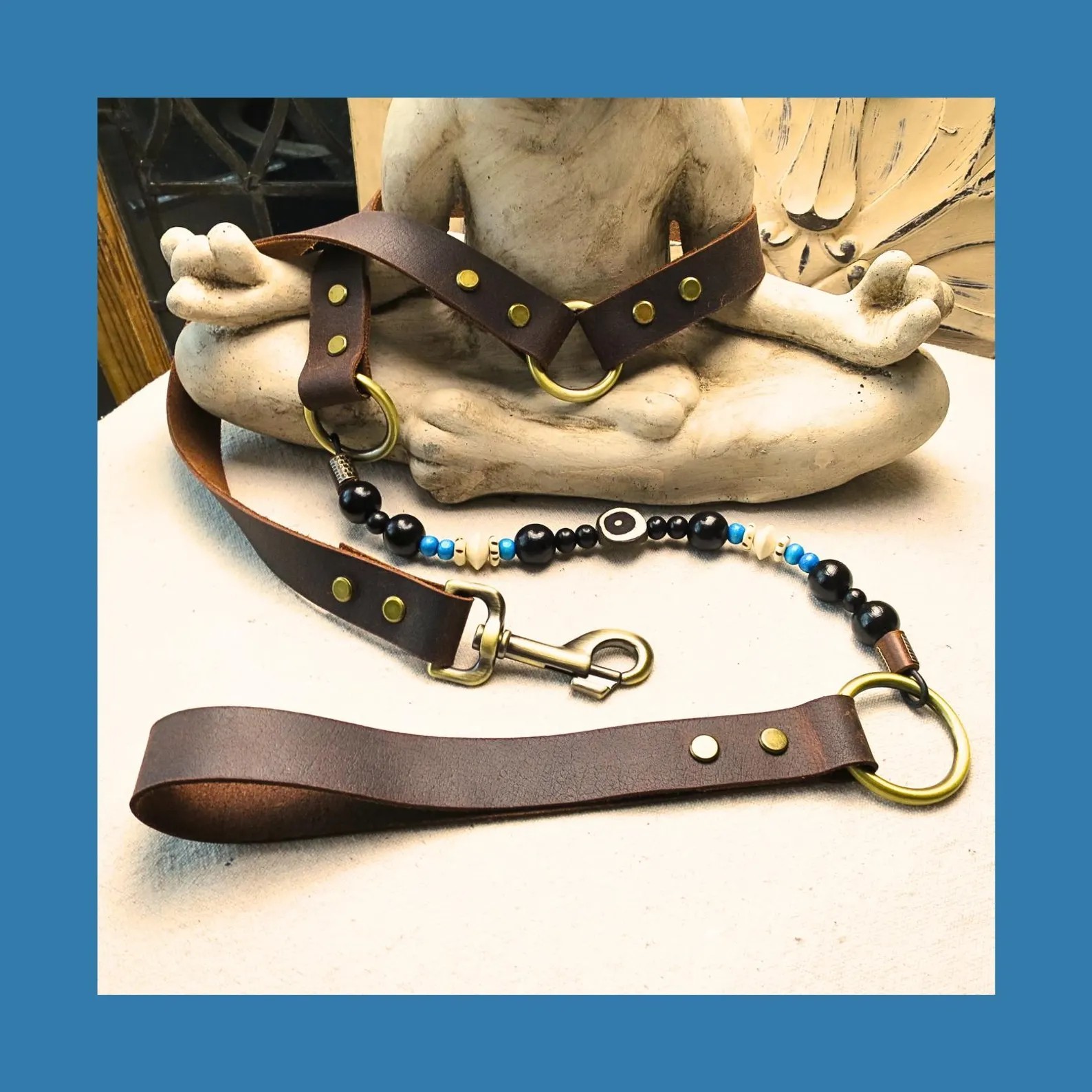 Strung with intention, this leash features an all-seeing eye and brightly colored beads, combining divinity, watchfulness, and grounded in knowledge. Built with durable materials and premium brass hardware, it’s equal parts elegant and enduring—a soulful piece for meaningful walks.
