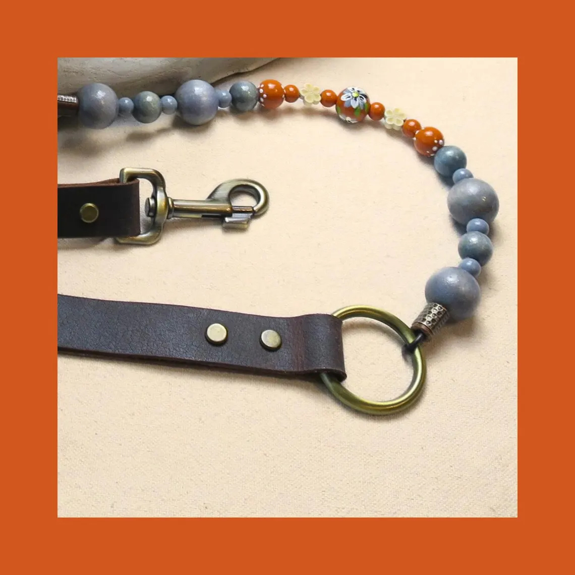Hand-strung with love, each leash features hand-painted floral beads, golden wood elements, and subtle earth-toned accents for balance. The solid brass hardware ensures strength and durability, while the symbolism of the daisy represents new beginnings, joy, and soulful companionship. Perfect for springtime strolls, light-hearted adventures, or simply honoring the pup who fills your world with happy.